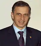 Presidential elections were held in Romania in 2009. They were the sixth presidential elections held in post-1989 Romania. The first round took place on 22 November, with a run-off round between the top two candidates Traian Băsescu (supported by the Democratic Liberal Party or PDL for short) and Mircea Geoană (supported by the Social Democratic Party or PSD for short) on 6 December 2009. Although most exit polls suggested a victory for Geoană in the runoff, the authorities declared Băsescu the narrow winner with 50.33% of the votes.[1][2] To date, it is the closest presidential election in the political history of Romania.