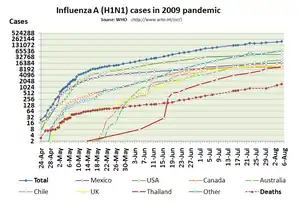 - ↑ "WHO – Influenza A(H1N1) – update 44". Archived from the original on 5 June 2009.
