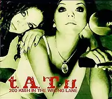 200 km/h in the Wrong Lane, also titled t.A.T.u. in Japan,[1] is the second, and first English-language, studio album by Russian music duo t.A.T.u., released on 10 December 2002, by Interscope Records. It is the duo's first studio album to be associated with Interscope after signing to Universal, the label they signed to in 1998. Due to the duo's lack of English vocabulary, the album was produced and written by producers such as Trevor Horn, Martin Kierszenbaum, Sergio Galoyan, Robert Orton and Ivan Shapovalov, who was placed as the duo's manager and executive producer. 200 km/h lyrically explores themes such as teenage rebellion, love, sexuality, sadness, independence and social rebellion.