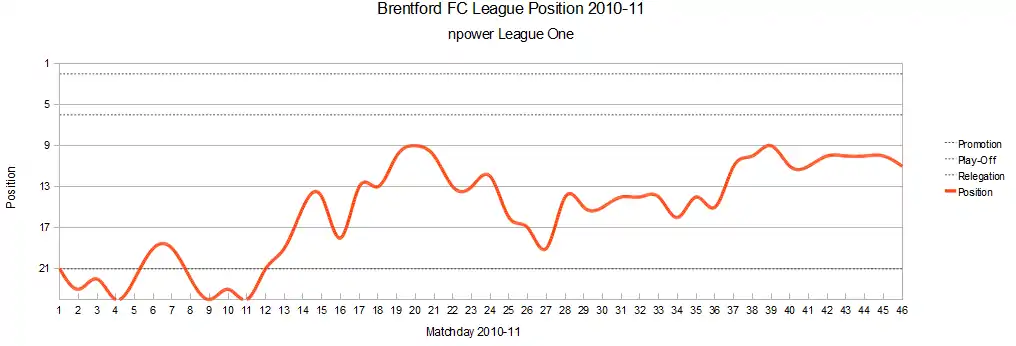 - 1 2 3 4 5 6 7 8 "Brentford results for the 2010–2011 season". Statto.com. Archived from the original on 9 September 2016. Retrieved 28 March 2017.