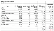 - ↑ "2010 election lower house seat numbers: AEC". Results.aec.gov.au. 29 September 2010. Retrieved 5 December 2012.
