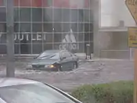 The storms brought extensive hail, strong winds and heavy rain, causing extensive damage to vehicles, property and trees, and flash flooding, as well as the first significant rainfall in Perth since 20 November 2009.[2] The hail stones are the largest ever known to have occurred in Perth and were around 3–6 cm (1.2–2.4 in) in diameter,[3] which caused extensive damage to property across the city,[4] including schools, hospitals, universities and power infrastructure. Wind gusts were recorded at around 120 km/h (75 mph).[2] At the peak, around 158,000 homes in Perth, Mandurah and Bunbury lost electric power.[2][5] Telephone lines were cut to thousands of homes until the next day, and the storms led to an estimated A$200 million worth of insurance claims within three days, with $70 million within the first 24 hours.[6] It was identified as the most expensive natural disaster in Western Australia's history,[7] and was declared a natural disaster by the Premier, Colin Barnett, allowing federal and state funds to be used for disaster relief.[8][9]