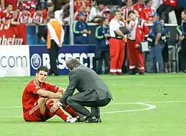 ![]() Jupp Heynckes (right) consoles Mario Gómez (left) after their defeat in the 2012 UEFA Champions League Final at the Allianz Arena | ||||
