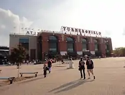 The Braves and Cardinals entered the final scheduled day of the regular season with the Wild Card standings tied between the two clubs. The situation was one familiar to the Braves, who were tied with the San Diego Padres in the Wild Card standings on the final day of the 2010 season.[56] Starting one hour before the Cardinals-Astros game, the Braves tossed veteran ace Tim Hudson against a Phillies pitching staff that was preparing for the 2011 National League Division Series. After giving up a run to the Phillies in the first inning and scoring one of their own in the bottom half, Braves second baseman Dan Uggla launched a two-run home run in the third inning that gave the Braves a 3–1 advantage. Meanwhile, the game in Houston began with the Cardinals scoring five runs in the top of the first. With veteran Cardinals' ace Chris Carpenter pitching for the Cardinals, the game was already out of reach. The Cardinals would sail to an 8–0 victory that assured at worst a tiebreaker at Busch Stadium the following night.[57] Back in Atlanta, the Phillies scored a run in the seventh to reduce the Braves' lead to one run. With the Cardinals game having already gone final, rookie closer Craig Kimbrel entered from the bullpen hoping to send the Braves to a tiebreaker game in St. Louis. After a leadoff single, Kimbrel struck out the next batter for the first out of the inning, but followed with two walks to load the bases. The next batter, Chase Utley, lofted a fly ball to deep left field, scoring the runner from third on a sacrifice fly to knot the game at three apiece. After another walk, Kimbrel finally got out of the inning. The score remained tied until the thirteenth inning when the Phillies rallied for a run. With two outs and runners on first and third, Hunter Pence, who was acquired by the Phillies in a midseason trade with the Houston Astros, sent a ground ball that reached the outfield grass for a single. The Braves needed a run to avoid an unfathomable ending to their season. After a leadoff strikeout, Dan Uggla reached base on a walk. Braves rookie first baseman Freddie Freeman, however, followed with a groundball double play, ending the inning, sending the Braves home, and sending the Cardinals to the National League Division Series to face the Phillies.[58][59] After sweeping the Braves to allow the Cardinals into the postseason, the Phillies lost the NLDS to the Cardinals in five games.[60] The Cardinals would go on to win the 2011 National League pennant in six games over Milwaukee in the NLCS, and the 2011 World Series in seven games over the AL Champion Texas Rangers.