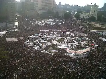 ![]() Demonstrators in Cairo's Tahrir Square on 8 February 2011 | |||
