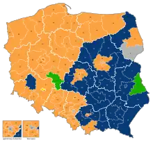The election was for all 460 seats of the Sejm and all 100 seats of the Senate. Candidates for Deputies are nominated either by the electoral committees of the various political parties and or by individual voter committees.[2] The process of election for the Sejm is through party-list proportional representation via the D'hondt method in multi-seat constituencies (41 in total),[3] with a 5% threshold for single parties and 8% threshold for coalitions (requirements waived for national minorities).[4]