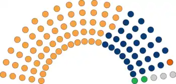 Last election 31 seats, 8.9% 53 seats, 13.2% 1 seat, 0.2%