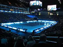 The 2012 ATP World Tour Finals took place from 5 to 12 November at the O2 Arena in London, United Kingdom. It was the 43rd edition of the tournament (38th in doubles). The tournament was run by the Association of Tennis Professionals (ATP) and was part of the 2012 ATP World Tour. The event took place on indoor hard courts. It served as the season-ending championships for players on the ATP Tour.[1] The eight players who qualified for the event were split into two groups of four. During this stage, players competed in a round-robin format (meaning players played against all the other players in their group).[2] The two players with the best results in each group progressed to the semifinals, where the winners of a group faced the runners-up of the other group. This stage, however, was a knock-out stage. The doubles competition used the same format.[3]