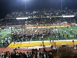 Fans storm Kidd Brewer Stadium after defeating the Furman Paladins and securing a share of the Southern Conference football championship