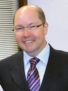 On 6 October 2008, then mayor and former governor Iris Rezende, of the Brazilian Democratic Movement Party (Partido do Movimento Democrático Brasileiro – PMDB) was re-elected with 74% of the valid votes.[7] His approval rating was of 81% at the time and he became the first mayor of Goiânia to be re-elected.[7] On 1 April 2010, Rezende resigned from the office in order to run for governor at the 2010 elections.[8] Deputy-mayor Paulo Garcia, of the Workers' Party (Partido dos Trabalhadores – PT), – a party opposed to irismo until they reconciled to form Rezende's electoral coalition in 2008[7] – took office.[8] Rezende lost the gubernatorial race to former governor and then-senator Marconi Perillo, of the Brazilian Social Democracy Party (Partido da Social Democracia Brasileira – PSDB), elected on the second round with 53% of the valid votes.[9]