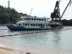 ![]() Lamma IV after her recovery, showing severe damage to her port side | |