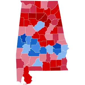 On March 13, 2012, the Alabama Democratic Party held statewide primaries to select delegates for the Democratic nomination, taking place on the same day as the Mississippi Democratic primary and the Utah Democratic caucuses. Incumbent Barack Obama ran unopposed. However, voters also had the option of voting "uncommitted" rather than supporting Obama. Of the 286,780 votes cast, 241,167 (84.09%) were for Obama and 45,613 (15.91%) were uncommitted.[3] Out of the 63 pledged delegates, 55 went to Obama and 8 were uncommitted. The floor vote at the Democratic National Convention allocated all of Alabama's 69 delegates to Obama.[4] Obama won all but 6 counties in the state.