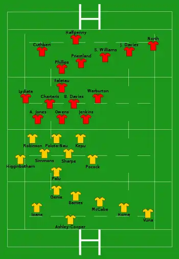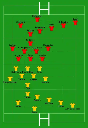 - Four players made their full international debuts for Wales: Rhodri Jones, Harry Robinson, Liam Williams and Adam Warren.