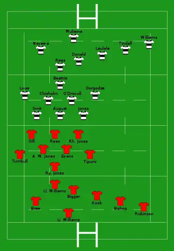 | Pen: Holmes (5/6) 10', 38', 56', 62', 66' | Report[3] | Try: Hook 19' c Tipuric 31' c A.W. Jones 40' m Con: Hook (2/3) 20', 32' Pen: Hook (2/2) 69', 76' |
