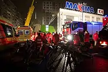 On 21 November 2013 the roof of a Maxima shopping centre in the Zolitūde neighbourhood of Riga, Latvia, collapsed at 17:44 local time resulting in the deaths of 54 people, including three rescue workers, and injuries to another 41 people.[1][2] An unknown number of people were able to leave the store on their own after the initial collapse.[3] It was the worst disaster in Latvia since 1950, when the steamer Mayakovsky sank in Riga, killing 147 people.[4] The disaster is often called Zolitūdes traģēdija ("Tragedy of Zolitūde" or "Zolitūde tragedy") by Latvian media outlets.