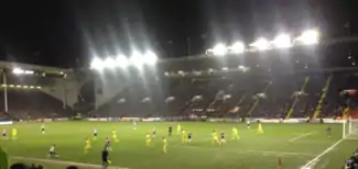 January began with a 3–0 away victory over Queens Park Rangers of the Premier League with Jamal Campbell-Ryce scoring a second half brace.[81] Paddy McCarthy returned to Crystal Palace at the start of January[82] and on 6 January, Andy Butler was sold to hometown club Doncaster Rovers for an undisclosed fee.[83] On 10 January, United beat promotion rivals Preston North End 2–1 at Bramall Lane with Marc McNulty scoring his tenth goal of the campaign.[84] On 15 January, youngster Joe Ironside was released by United and joined Alfreton Town on an 18-month deal.[85] On 16 January, youngsters Otis Khan and Julian Banton joined Matlock Town on loan.[86] United's first loss of the calendar year came on 17 January at the hands of Milton Keynes Dons in a 1–0 defeat.[87] On 21 January, Tottenham Hotspur took a 1–0 lead in the first leg of the League Cup semi-finals at White Hart Lane with Andros Townsend converting a penalty after Jay McEveley accidentally handled the ball in the box.[88] On 22 January, Chris Porter joined Colchester United on an 18-month deal after being released by the Blades.[89] On 23 January, United brought in two players from Nigel Clough's former club Derby County, midfielder Paul Coutts who signed for an undisclosed fee and former loanee from last season Kieron Freeman joined on a free transfer; both players signed two-and-a-half-year contracts.[71] The following day United announced the signing of John Brayford from Cardiff City on a three-and-a-half year deal for an undisclosed fee.[70] The same day, United drew 1–1 away at Preston North End in the fourth round of FA Cup, with Diego De Girolamo scoring his first goal for the club, earning a replay at Bramall Lane.[90] In the League Cup semi-final second leg against Tottenham Hotspur on 28 January 2015 at Bramall Lane, with Spurs winning 1–0 at half time, Che Adams replaced Jamal Campbell-Ryce after 74 minutes and five minutes later he had scored his first goals for Sheffield United with two goals in just over two minutes, which would have taken the game to extra time had Christian Eriksen not scored his second goal of the match for Tottenham Hotspur in the 88th minute to win 3–2 on aggregate.[91] On 30 January, Stephen McGinn joined Dundee on loan for the remainder of the season,[92] youngster Jamie McDonagh joined Matlock Town on loan[93] and Jason Holt joined United on loan from Heart of Midlothian for the rest of the season.[94] The following day Jamie Murphy signed a new two-year contract and Terry Kennedy signed a new one-year contract however Diego De Girolamo declined a new contract with the club.[95] Later that day, United rounded off January with a 2–0 home victory over promotion rivals Swindon Town with Jamie Murphy coming off the bench in the second half and scoring a brace.[96]