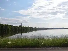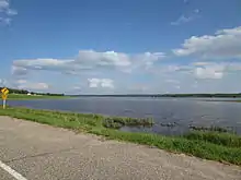With excess spring flows on the Assiniboine River directed towards Lake Manitoba through use of the Portage Diversion, lake levels were above the desirable range of the lake of 810.0 to 812.0 feet above sea level (ASL) and even the upper limit of 813 feet ASL prior to the summer flood.[14][15] Continued use of the Portage Diversion occurred after it was re-opened to help mitigate against flooding, during which flows of over 34,000 cfs were directed towards the lake, well above the original designed channel capacity of the Portage Diversion of 25,000 cfs.[16][17] During the 2011 as well as the 2014 floods, work was done on the Portage Diversion to allow it to convey the higher volumes experienced. The result of this was that the water level of Lake Manitoba peaked at 814.6 feet putting residents on the lake at risk of flooding and damage from wind events.[18]