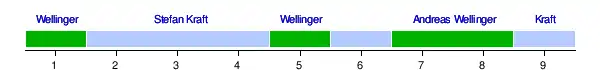 - ↑ Second round for men in Innsbruck was canceled due to strong wind. Only first round counted as official result.