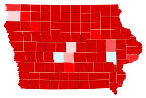 The difference of 9.4% points was the largest winning margin for Trump in a state that had voted for Barack Obama in 2012. This was also the first time since 1976 that Iowa voted to the right of Texas, which Trump won in this election by 8.99 points. Trump carried 93 out of 99 counties, the most for a Republican presidential nominee in the state since 1980, and he flipped 32 counties won by Obama in 2012, the most out of any state. [21] This was the first time since 1988 in which Iowa did not go for the winner of the popular vote. It was also the first time since 2004 (and only the second since 1984) that Iowa would vote for a Republican candidate. This is also the first election since 1980 in which a non-incumbent Republican won the state.