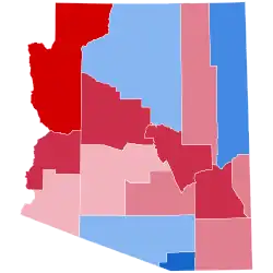 Maricopa County in particular went from a 10.7% margin of victory for Romney in 2012 to a 2.8% margin of victory for Trump, making this only one of three times that a Democrat held the county's margins to single digits since 1952. Indeed, the only other times were 1964 and 1996. Clinton also came the closest of any Democrat to winning Yuma County since La Paz County broke off from it in the 1980s, as the county was last carried by a Democrat in 1964.
