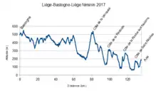 The first edition of Liège–Bastogne–Liège Femmes, a road cycling one-day race in Belgium, was held on 23 April 2017. It was the eighth event of the 2017 UCI Women's World Tour. The race started in Bastogne and finished in Ans, containing four categorized climbs and covering a total distance of 135.5 km.[1] 139 riders started the race, 98 finished.[2]