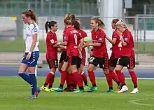 - ↑ "DFB-Präsidium verabschiedet Frauen-Rahmenterminkalender 2018/2019" [DFB executive committee adopts 2018–19 women's framework schedule]. DFB.de (in German). German Football Association. 8 December 2017. Retrieved 16 April 2018.