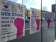 The University and College Union (UCU), a trade union representing around 110,000 staff at UK universities,[1] ran a major series of connected strikes and related industrial action from 2018 to 2023. The action has been characterised as "something of a milestone" for "impending service sector strikes of the 21st century."[2]