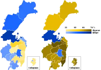 The second round was held on 23 September, between the top two candidates, the Liberal Democratic candidate Sergei Furgal and the incumbent Governor Vyacheslav Shport, nominated by the United Russia.[1] Both of them scored 35% of the vote in the first round. In the second round, Sergei Furgal was elected Governor of Khabarovsk Krai with 69.57% of the vote.