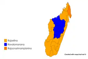 | Andry Rajoelina | Young Malagasies Determined | 1,954,023 | 39.23 | 2,586,938 | 55.66 | |