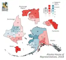 Half of the seats of the Alaska Senate and all of the seats of the Alaska House of Representatives were up for election in 2018. Republicans retained control of the Senate, while a cross-partisan coalition of Democrats, Republicans, and independents retained control of the House of Representatives.[9]