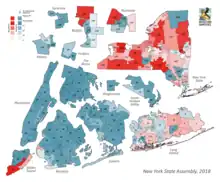 - ↑ On April 16, 2018, the Independent Democratic Conference, which had been in coalition with Republicans since 2012, dissolved, returning the chamber to Republican control.[1]