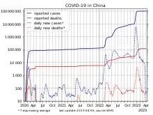 - ↑ Griffiths, Robbie (25 December 2022). "China has stopped publishing daily COVID data amid reports of a huge spike in cases". NPR. Retrieved 25 December 2022.