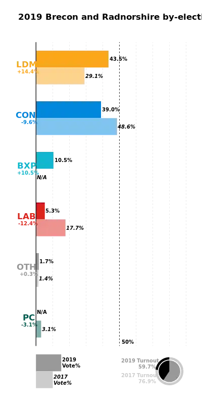 43. 1 2 3 Saull, Peter (2 August 2019). "Brecon and Radnorshire by-election: What does it tell us?". Retrieved 5 August 2019.