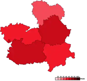 ![]() Constituency results map for the Cortes of Castilla–La Mancha | |||||||||||||||||||||||||||||||||||||||||||||