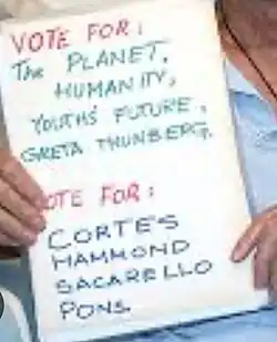 | John Charles Pons | "Vote for: The Planet, Humanity, Youths' Future, Greta Thunberg" | ![]() | |
