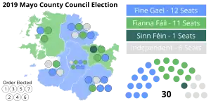 An election to all 30 seats on Mayo County Council was held on 24 May 2019 as part of the 2019 Irish local elections. County Mayo was divided into 6 local electoral areas (LEAs) to elect councillors for a five-year term of office on the electoral system of proportional representation by means of the single transferable vote (PR-STV).