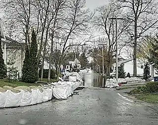 ![]() Flooded street and Dyke in Laval-Ouest, 14 May 2019 | |
