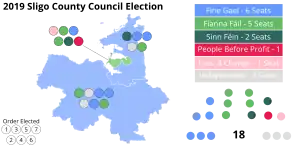 An election to all 18 seats on Sligo County Council was held on 24 May 2019 as part of the 2019 Irish local elections. County Sligo was divided into 3 local electoral areas (LEAs) to elect councillors for a five-year term of office on the electoral system of proportional representation by means of the single transferable vote (PR-STV).