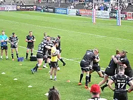 The Wolfpack warming up for the round 11 match against Featherstone in April 2019