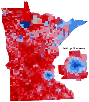 Per exit polls by the Associated Press, Biden carried 51% of White Minnesotans, as well as 58% of college educated voters and 55% of voters from union households.[6] Trump's strength was concentrated in rural areas, while Biden performed better in urban and suburban areas.
