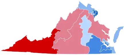 Prior to the election, most news organizations considered this a state Biden would win, or a likely blue state. On the day of the election, Biden won Virginia with 54.15% of the vote, and by a margin of 10.2%, the best performance for a Democratic presidential candidate since Franklin D. Roosevelt in 1944.[4] Trump became the first Republican incumbent to consecutively lose Virginia since William Howard Taft and Biden became the first Democratic nominee to win Chesterfield County and Lynchburg City since 1948, Virginia Beach City since 1964, James City County since 1968, and Stafford County since 1976.[5] He also flipped Chesapeake City back to the Democratic Party. Trump flipped no counties or independent cities in the state. Nevertheless, Biden became the first Democrat since 1992 to win without Buckingham County and Essex County, and the first since 1960 to win without Westmoreland County, a notable bellwether. He was the first Democrat to ever win without Caroline County, Nelson County, or Covington.