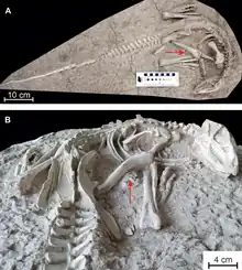 - ↑ Claudio Labita; David M. Martill (2020). "An articulated pterosaur wing from the Upper Cretaceous (Maastrichtian) phosphates of Morocco". Cretaceous Research. 119: Article 104679. doi:10.1016/j.cretres.2020.104679. S2CID 226328607.