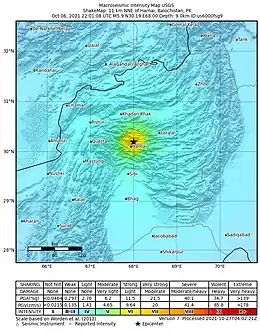 This article incorporates text from this source, which is in the public domain. - ↑ "M 7.1 – 29 km ESE of Harnai, Pakistan". earthquake.usgs.gov. U.S. Geological Survey. Retrieved 7 October 2021.