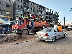 In 2019, the government agreed to the extension of a credit facility with the International Monetary Fund on the basis they would run a fiscal surplus, increase tax collection as a portion of GDP, reduce subsidies for petrol and electricity, increase investment in public infrastructure, reduce borrowing from the central bank and promote development of the private sector.[23] Following recommendations at the United Nation's Third International Conference on Financing for Development in Addis Ababa in October 2019, Condé announced that 15% of mining revenue would be dedicated to the National Agency for the Financing of Local Communities to boost local government, as well as introducing measures to raise tax collection from 13% to 15% of GDP.[24] This programme failed to bring immediate financial benefits for most citizens, with 60% of the labour force still working in the agricultural sector,[25] and the communities around the mines being inadequately compensated for land, water and health losses connected with the mineral extraction.[26][27][28]