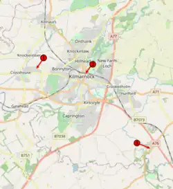 | Location | Kilmarnock, Scotland: University Hospital Crosshouse Kilmarnock railway viaduct A76 road |