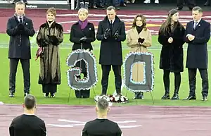 In their first match of 2023, West Ham played Leeds United at Elland Road on 4 January. Leeds opened the scoring midway through the first half through Wilfried Gnonto before Lucas Paquetá converted a penalty, which had been awarded after Pascal Struijk fouled Jarrod Bowen, in the final moments of the first half. Gianluca Scamacca put the Hammers ahead early in the second half before Rodrigo scored for Leeds in the 70th minute to level the match, which ended in a 2–2 draw.[66][67] The match also included tributes to West Ham co-owner and joint-chairman David Gold, who had died earlier that day.[68][69] The tributes included a bouquet of flowers being left at his allocated seat in the director's box, a round of applause from fans of both teams and black armbands being worn by all players on the pitch.[70]
