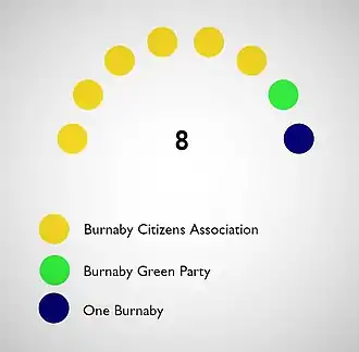 | Burnaby Citizens Association | James Wang (X) | 13,024 | 6.07 | |