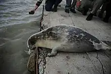 On 4 December 2022 a mass die-off of Caspian seals (Pusa caspica) in the Caspian Sea was reported. Initially over 140 Caspian seals were found dead on the beaches of Kazakhstan.[1] By 5 December around 2,500 dead Caspian seals have been found on Dagestan's shore. No conclusive cause of the die-off has been established. Dagestan's Ministry of Natural Resources believed the animals had died of "natural factors" and estimated the number of dead seals was likely to be much higher.[1] While Caspian seal is an endangered species, Dagestan's Ministry of Natural Resources said their overall number in the area remained stable, "ranging from 270,000 to 300,000" (while the Caspian Environmental Protection Center put the number at 70,000).[2]