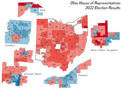 The 2022 Ohio House of Representatives elections were held on November 8, 2022, to elect representatives in all 99 districts of the Ohio House of Representatives. Members were elected in single-member constituencies to two-year terms. These elections were held concurrently with various federal and state elections, including for Governor of Ohio and the Ohio Senate.[1]