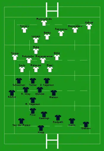 - Murphy Walker (Scotland), Sireli Maqala, Livai Natave and Ratu Leone Rotuisolia (all Fiji) made their international debuts.